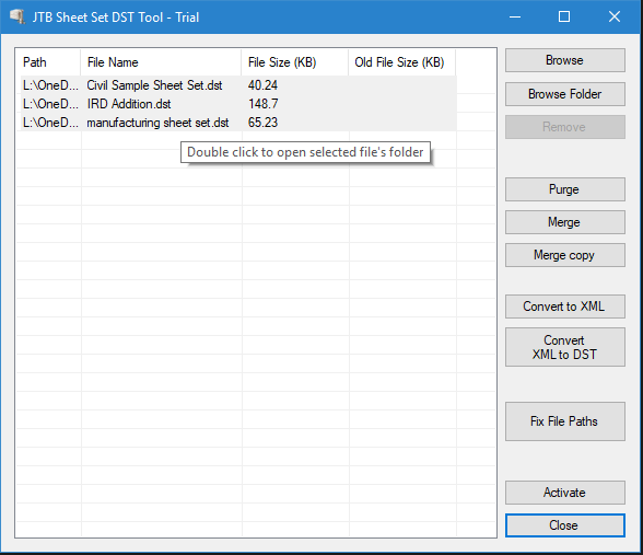 The JTB DST Tool trial is limited to work with 3 sample files that are included.