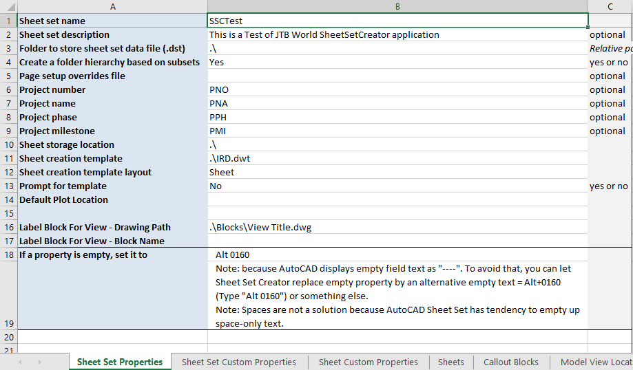 To make a first test on how it works take a look at 'Sheet Set Creator Template Sample.xlsx' found in this location.